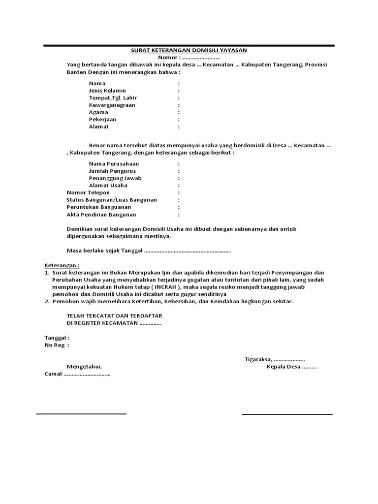 Contoh surat keterangan domisili yayasan contoh surat.