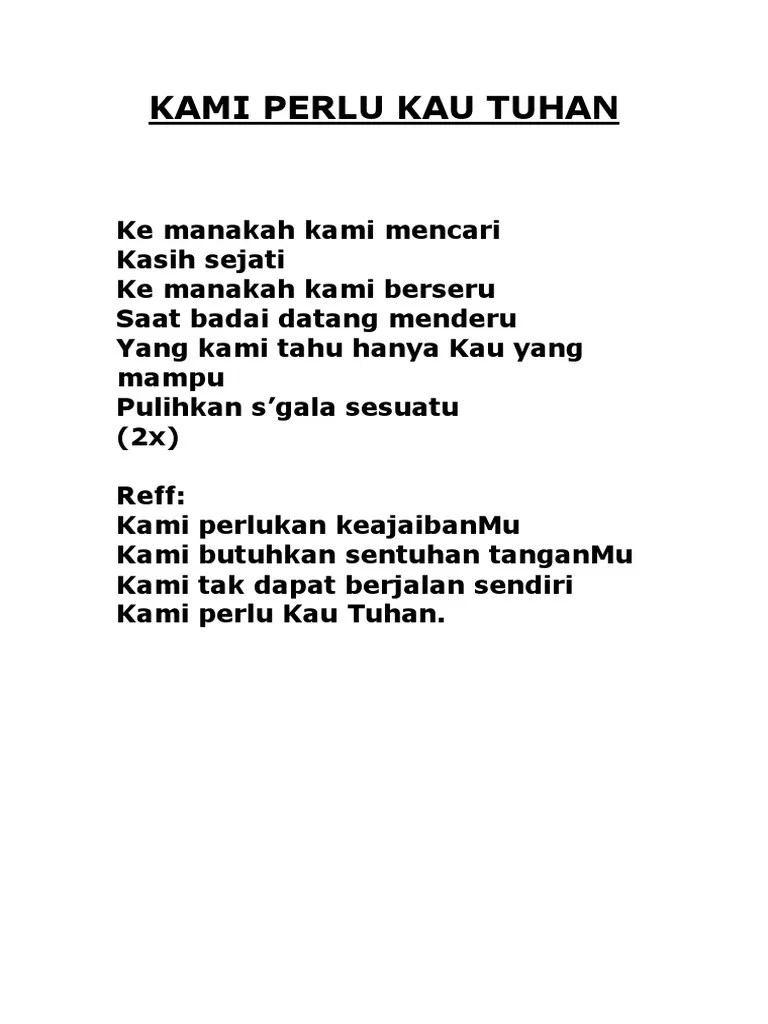 Lirik Yesus Ku Memerlukan Mu - Lagu Rohani Pdf / Ku dengar suara lembut memanggil.